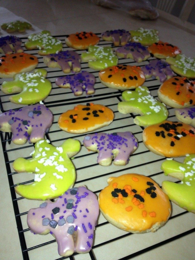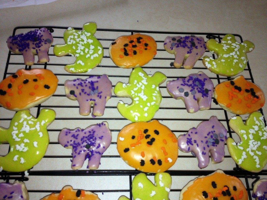 Happy Halloween Everyone!!! 🙂 My 3 year old nephew Ethan and I decided to make some sugar cookies in the honor of Halloween! We used cookie cutters in the shape of a ghost, pumpkin and scary cat! It was lots of fun having him get his hands messy! I obtained this recipe from Weight Watchers. This is probably the best tasting sugar cookies I have ever made!
