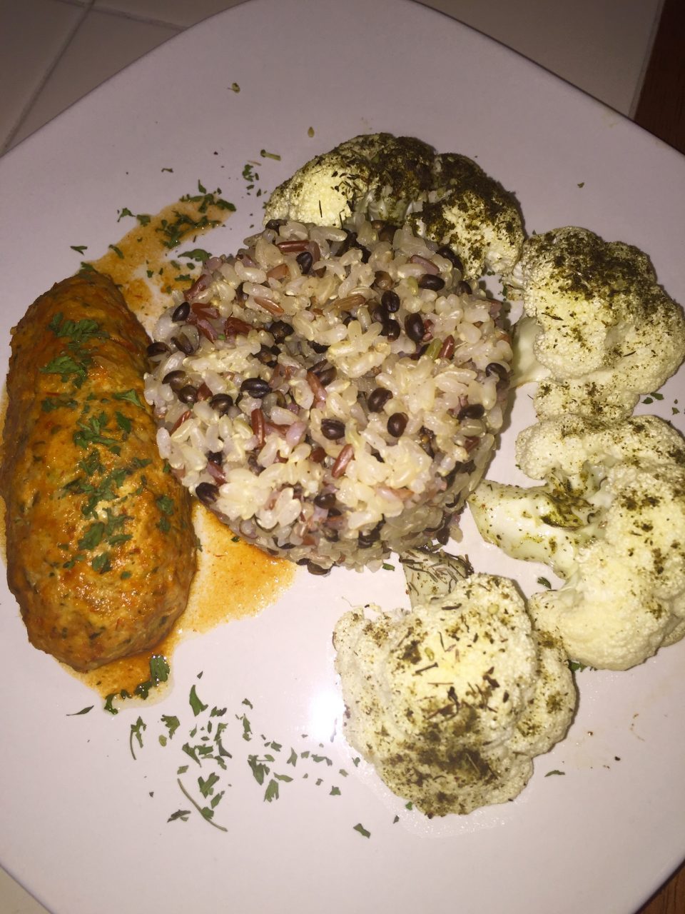 Serve with any side of veggies and carb that you like. I served with a side of Brown Rice medley and Roasted Cauliflower.